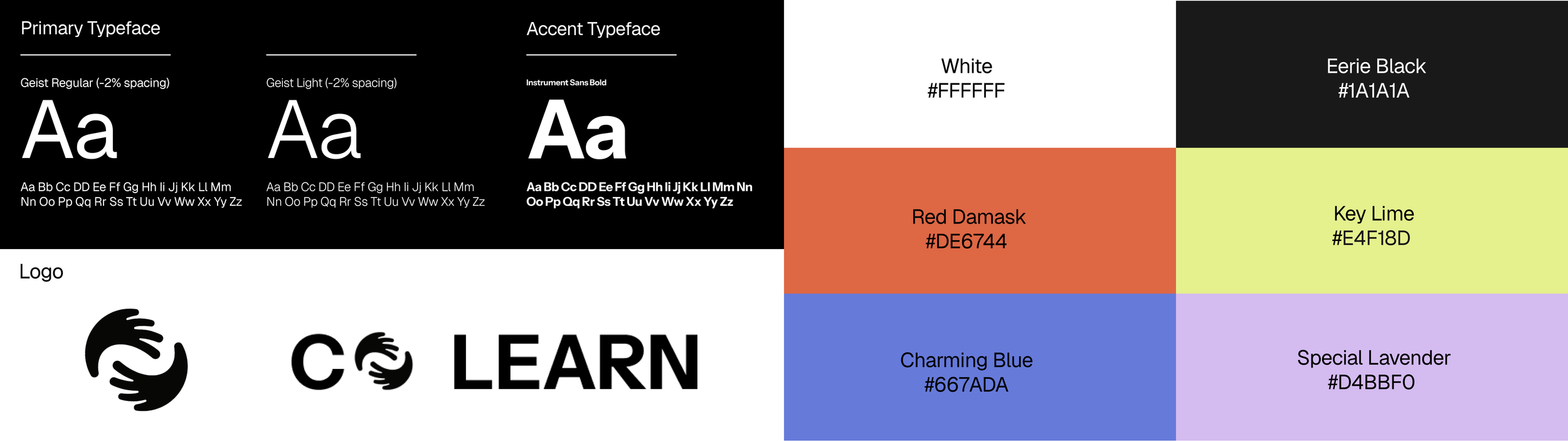 CoLearn's visual design is intentionally understated. A warm, creative palette nods to the energy of education without feeling institutional, while clean typography and generous spacing keep the focus on content and connection rather than the interface itself. The logo emphasizes the collaboration aspect of the platform, signaling that CoLearn provides its users with a helping hand. Every visual decision was made in service of one goal: making educators feel at ease the moment they arrive.