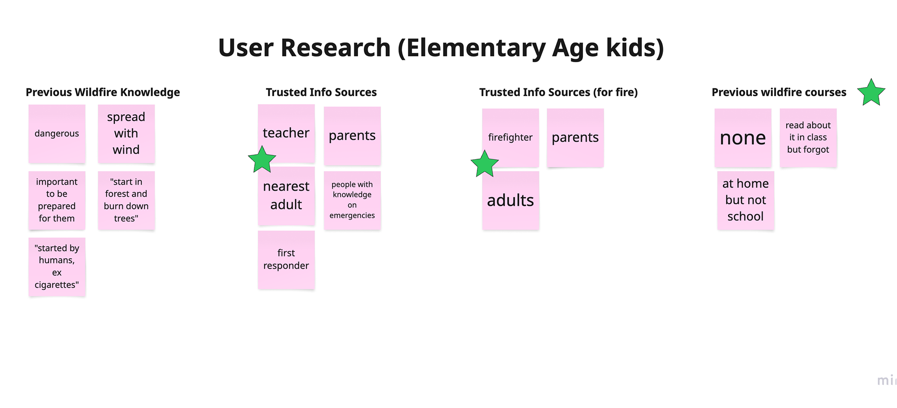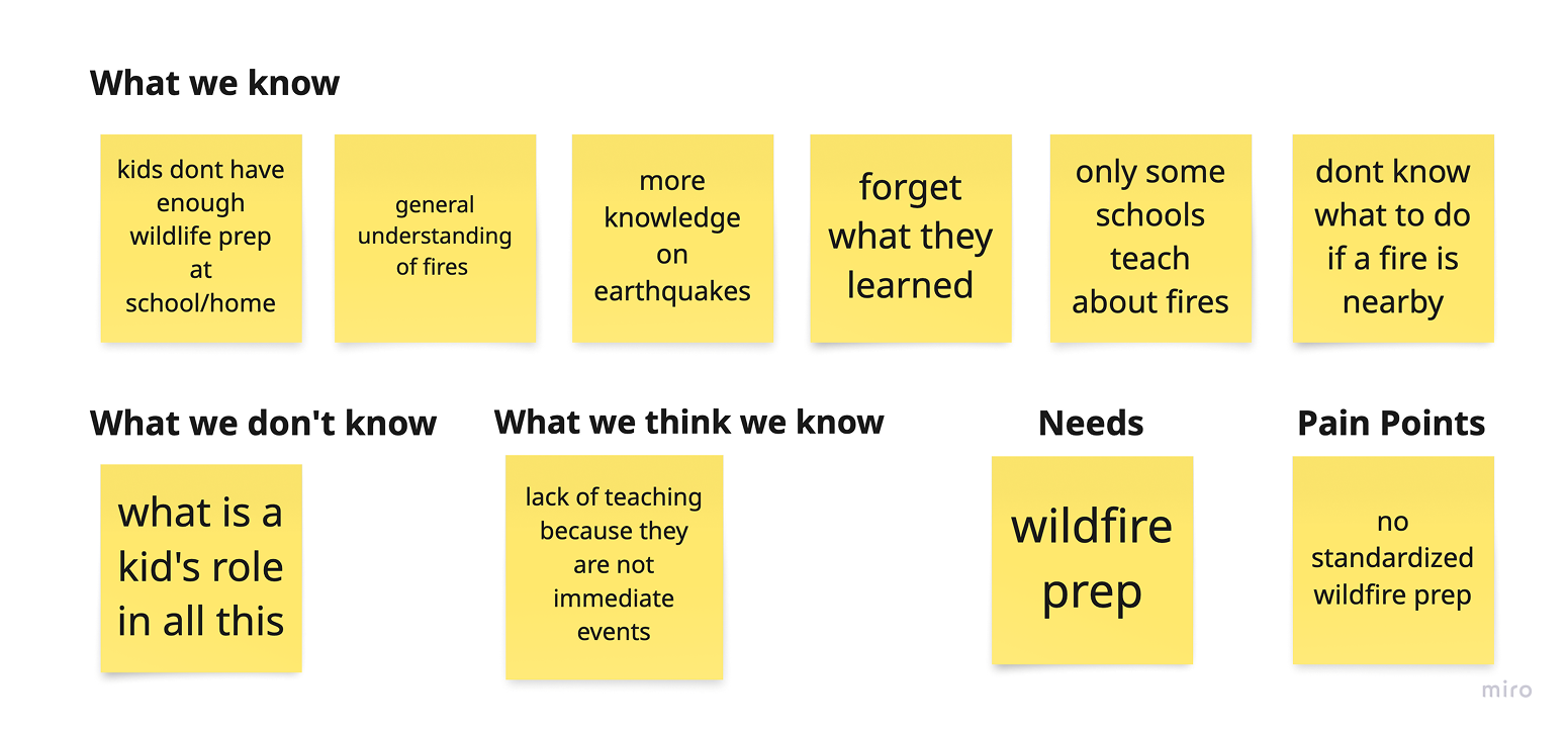 Problem Statement: "How might we empower children in grades k-3 to understand, engage with, and remember wildfire preparedness, while also serving as messengers for spreading awareness and building knowledge within their families?”