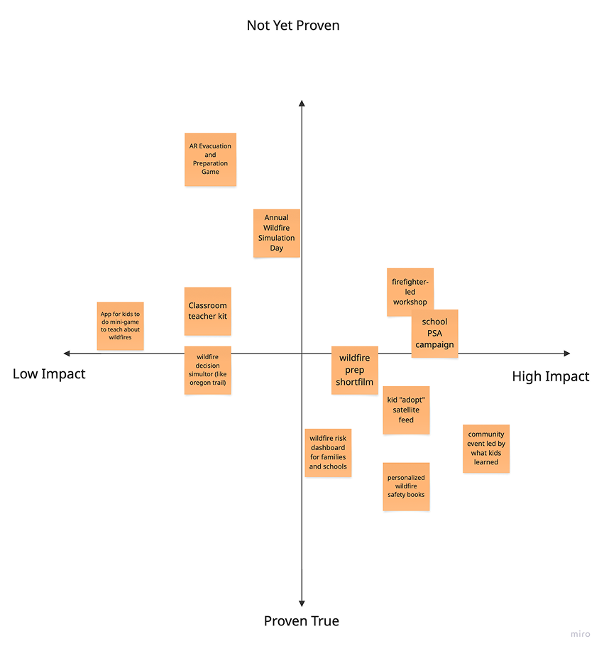 An assumptions chart helped us map out all our potential solutions to find the ones with the highest impact and were backed by our previous research